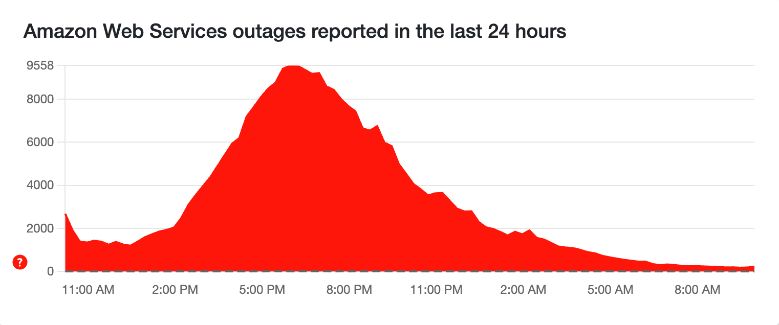 According to data from Downdetector, thousands of outage reports flooded in within minutes, while Amazon technicians worked to fix a DNS resolution issue affecting the DynamoDB service. The outage lasted several hours, and its effects could linger for days — from blocked corporate payments to delays in public services.